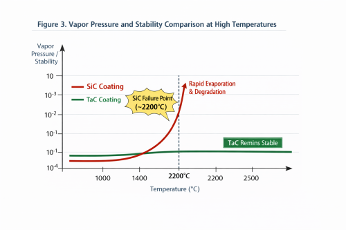 비교할 수 없는 열역학적 안정성: 탄탈륨 카바이드(TaC)는 3880°C의 놀라운 녹는점을 자랑합니다. Journal of Crystal Growth의 연구에 따르면, SiC 코팅은 2200°C 이상에서 "부적절한 증발"을 겪습니다. 여기서 실리콘은 탄소보다 빠르게 승화되어 구조적 저하와 입자 오염을 초래합니다. 이에 비해 TaC의 증기압은 3~4이다.SiC보다 훨씬 낮은 크기로 결정 성장을 위한 깨끗한 열장을 유지합니다.